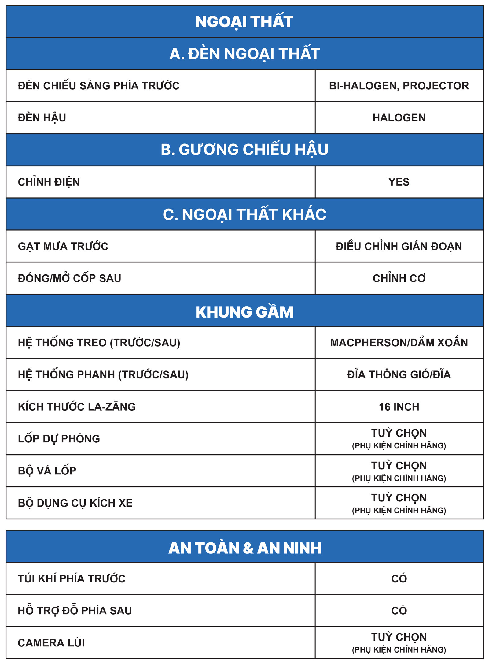 • Thông số kỹ thuật